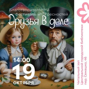 Фонд «Доброе дело» приглашает на 2-й благотворительный фестиваль интересностей «Друзья в деле» — для детей и всех, кто ими был. Тема этой встречи — сказка «Алиса в Стране чудес»