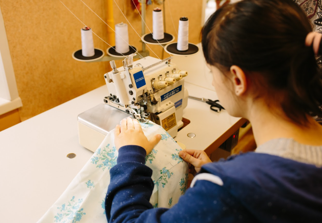 Модели и принты будущих изделий выбирают Екатерина и Виктория, ориентируясь на актуальные каталоги и тренды, чтобы продукция была конкурентоспособной. А в качестве материалов для производства используют натуральные ткани — лен и хлопок. Такая работа требует огромного терпения и сосредоточенности: если опытной швее на обработку шва нужно 15 минут, то ребята в мастерских могут кропотливо трудиться над ним до двух часов. А на изготовление комплекта постельного белья уходит около трех дней.