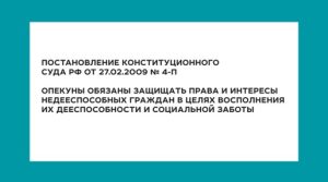 В ролике напоминают, что опекун должен поддерживать своего подопечного в его желаниях, помогать организовать жизнь, объяснять сложные вопросы простым языком и вообще находить время для того, чтобы выслушать проживающего. И, конечно, не принимать решений, касающихся его жизни, без его согласия. Кроме того, раз в году интернат должен инициировать обследование жителей с участием врачебной комиссии, в результате которого, в том числе, ставится вопрос, есть ли основания для обращения в суд об изменении гражданско-правового статуса.