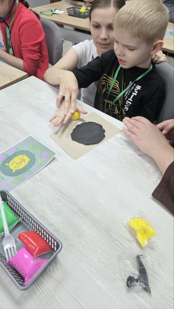 — «Есть дети, которые могут работать сами, а есть те, кому нужна поддержка буквально на каждом этапе. В таких случаях волонтёр или наставник работает с ребёнком «рука в руку», помогает выполнять движения и создавать творческую работу», — объясняет Анастасия Макеева.
